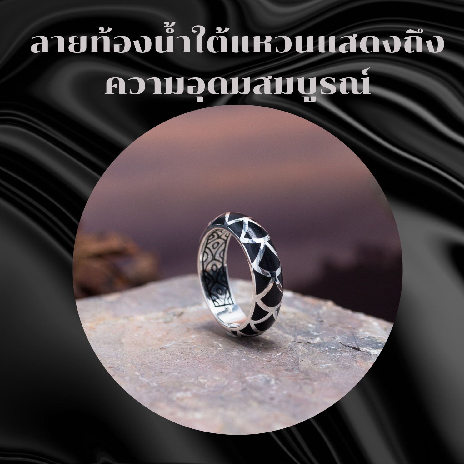 แหวนเงินพญานาค ลายเกล็ดนาคราช อีนาเมลสีดำ ลายไทย ถือเป็นเครื่องประดับที่มีความหมายและความงดงามในทุกมิติ ด้วยการออกแบบที่ปราณีตและลวดลายที่บรรจงทำให้แหวนนี้มีเสน่ห์และเอกลักษณ์เฉพาะตัว